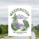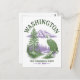 Fånga den majestätiska skönheten i Washington, The Evergreen State, med detta fantastiska souvenir-rese vykort! Med vintage-inspirerade graverade illustrationer som perfekt fångar essensen av Pacific Northwest. Designen visar stolt en magnifik vitörnen, sittande mitt ibland höga städsegröna träd, med det ikoniska Mount Rainier i bakgrunden tvärs över en lugn vattenyta.
