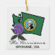Ta med Evergreen State till dina högtidsfiranden med vår anpassade Washington State-ornament! Denna vackra ornament har Washingtons statsform fylld med statsflaggan och prydd med en handritad Pacific Rhododendron, Washingtons officiella statblomma.