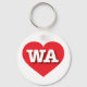 Den här nyckelkedjan har ett pulserande rött hjärta som innehåller det feta, vita, övre fodral brev WA, officiellen förkortning för Washington, det gröna tillståndet.