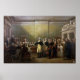 GENERAL GEORGE WASHINGTON AVSTÅR FRÅN SIN KOMMISSION AV John Trumbull. General George Washington avgick från sin kommission som överbefälhavare för armén till kongressen, som då sammanträdde i marylandhuset i Annapolis den 23 december, 1783. Denna åtgärd var av underbar betydelse när det gällde att inrätta ett civilt, snarare än ett militärt, styre som ledde till en republik, snarare än en diktatur. Washington står med två lägerassistenter som vänder sig till kongressens ordförande, Thomas Mifflin, och andra, som Elbridge Gerry, Thomas Jefferson, James Monroe och James Madison. Washington och hennes tre barnbarn visas på åhörarläktaren, även om de faktiskt inte var närvarande vid evenemanget. Det ryktas dock att målningen ger en bild av Washington i olika skeden av hans liv. John Trumbull (1756-1843) föddes i Connecticut, guvernörens son. Efter att ha avlagt examen från Harvard Universiteten tjänstgjorde han i kontinentalarmén under general Washington. Han studerade målning med Benjamin Väster i London och fokuserade på historiematning. Denna oljemålning på arbetsytan ligger nu i United Stater Huvudstad rotunda i Washington D.C. Dess mått är 365,76 cm × 548,64 cm (144,00 x 216,00 tum). Beställdes 1817 och placerades i rotunda 1824. zazzle.