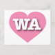 Det här vykortet har ett rosa i coola som innehåller det feta vita övre fodral WA, förkortningen officiell för Washington, det gröna tillståndet. Baksidan av vykortet är tom och väntar på dina handskrivna känslor eller anpassade texter.