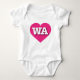 Den här baby-romaren har ett pulserande shock rosa som innehåller det feta, vita, övre fodral brev WA, förkortningen officiell för Washington, det gröna tillståndet.