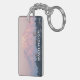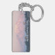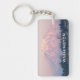 Rektangulär, akryl, dubbla-sidig nyckelring med en bild av ett landskapsljud av en rosa alpenglow på Mount Rainier och en Puget Ljud city, belägen i Stilla nordvästra delstaten Washington. Gör en underbar resande souvenir!