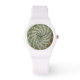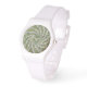 Crochet mönster i rundan. Varierade gröntar som bakgrund och vitt som spiral-armen utstrålar från mitten. Siffrorna är vita med skugga och sitter ungefär vid den vita spiral armen. ***Del av samordnad uppsättning bkmAN1c