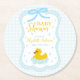 Water Droplets Gingham Boy Baby Shower Underlägg Papper Rund