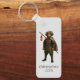 This keychain features iconic images from the Chinese classic "The Water Margin". The valiant warrior Lin Chong the Panther Head is on one side of the keychain, while the other side features an ancient wine jug with the label for Mount Liang, the outlaws' lair and a name that is synonymous with honor and justice.