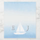 Blue watercolor depiction of the water meeting the sky. Custom monogram with sailboat