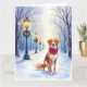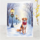 Watercolor American Foxhound Snowy Lamppost Kort