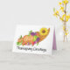 Thanksgiving kort. Handmålad höstskörd med vattenfärg. Cornucopia med solros. Perfektens höstscen för ett färgstarkt thanksgiving kort. Överraska dina vänner och din familj med en unik Thanksgiving hälsning.