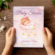 Featuring a gentle pastel background, a cute sleeping baby on a fluffy cloud, and glowing star accents, this design brings warmth, tenderness, and magic to your celebration.