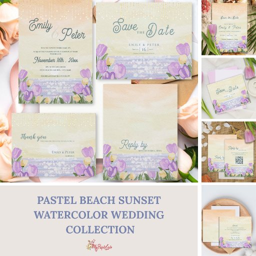 Pastel Beach Sunset Watercolor Wedding StationeryDesignad av Mypaperlove Designs
