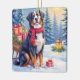 Watercolor Bernese Mountain Dog Sleigh Christmas Julgransprydnad Keramik