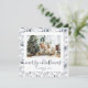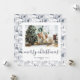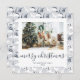 Blå vattenfärgade fotojulkort med anpassningsbar och blad i blått och grått färg. Anpassa enkelt de här färgfärgerna till jokertecken med foto och familj namn.