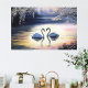 Vattenfärgad vit Svanar i Sjö-Kanvastrycket Detta är ett vackert och öga-fångande vattenfärgsvit svanar i färglöst sjö på kanvastryck för dig.