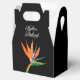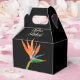 Svart gable-favoritboxar har exotiska fåglar av paradisvattenfärgade blommor på framsidan och baksidan med namn överst och ett personligt tack på baksidan. MATCHING-inbjudningar, tallrikar, blöjor och andra artiklar i vår butik.