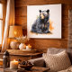 Lägg till ett litet stycke rustik charm och konstnärligt stil på väggarna med det här fantastiska kanvastrycket med en vattenfärgmålning av en svart björn. Den här konsten biet är perfekt för ett vardagsrum, sovrum eller hytt, som för skogens serenskönhet till ditt hem. Den unika designen har ett mjukt, handmålat utseende med det konstnärliga stänken i färg, skapar den ett vackert och hållbart föremål som firar skogslivets fridfullhet och styrka.