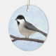 Rund keramisk ornament med min ursprungliga digitala vattenfärgsillustration av en svart-kapslad Chickadee som genomträngs på en blyfri skugga mot en blek blå himmel. Anpassadet kan ändras så att det blir spelar ingen roll.