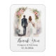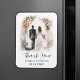 Elegant personlig bröllop tackar dig för dina magnet-gästtjänster, som har en illustration av ljusstyrka och groomvattenfärg med en blommigt. Redigera kortmallen med ett datum och namnen newlyweds.