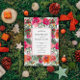 En elegant och förtjusande blommigt julbröllopsinbjudan. Den har vattenfärgad grön oliv och eukalyptus löv. Och rödblommor och orange- och grönbär på vit bakgrund. Ta det nu och gör det till ditt, så att ditt inbjudan verkligen är engagerat!