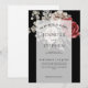 En inbjudan till ett elegant- och vattenfärgsbröllop med rött och vitt ro, med eukalyptus grey på svart bakgrund. Anpassa till din speciella dag.