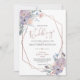 Vackra bröllopsinbjudningar för blommigt med boho-blommor i skuggor av violett, lilak, lila, persika, , dammig blått och gröntar med ro guld eller terra cotta-geometrisk ram och text och accentuerade på baksidan med ett redigerbart fast färg för att samordna med bröllop (exemplet visar en terra cotta peach färger). ÄNDRINGAR: Text- och bakgrundsinformation färger kan ändras så att de stämmer överens med färg-schemat genom att klicka på CUSTOMIZE FURTHER i avsnittet PERSONALIZE för ett anpassad design. Kontakta designern via Zazzle-Chattan eller makeitaboutyoustore@gmail.com om du vill att designen ska ändras, på en annan produkt eller om du vill ha koordinerande artiklar.