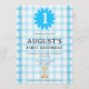 Watercolor Blue Check Koala Birthday Invitation Inbjudningar