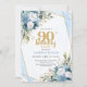 Watercolor Blue Flowers 90th Birthday Elegant Inbjudningar