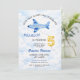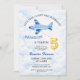 Watercolor Blue & Gold Airplane 5th Birthday Inbjudningar