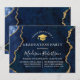 Modern Elegant Watercolor Blue och Guld Marble Agate Geode Studentfest Inbjudan. Trendig Calligraphy Script. Guld Grad Cap.