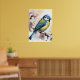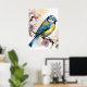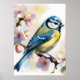 Watercolor Blue Tit Bird on Apple Tree Spring Poster