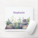 Work, study, or play in style with this Personalized Mouse Pad featuring Purple & Green Watercolor Plant and Book Clipart. The bottom of the pad is adorned with delicate purple and green watercolor plant illustrations and charming book clipart, adding a touch of artistic elegance to your desk.