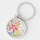 Watercolor Botanical Flower Garden Key Chain Rund Silverfärgad Nyckelring