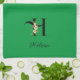 Watercolor botanical green initial monogram kökshandduk