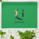 Want to make your kitchen a little brighter? This super-cute green towel is here to help! It's not just pretty; it's seriously absorbent, so those little kitchen spills are no match for it. But here's the best part: it can be personalized just for you! Picture your initial and full name, all fancy and monogrammed, surrounded by sweet red and white watercolor flowers. How adorable is that? It's like a little piece of art that's also super useful, making everyday kitchen tasks a bit more fun. This towel isn't just for drying dishes; it's a fun way to show off your style and add a personal touch to your kitchen. It's a lovely and handy little thing that brings both function and a sprinkle of personalized charm to your space.