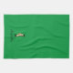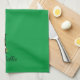 A charming green kitchen towel, crafted from absorbent watercolor fabric, is personalized with an initial monogram and full name. The letter of the monogram is beautifully adorned with delicate red and white watercolor flowers, adding a touch of elegance and personalization. This decorative yet functional towel brings a personalized aesthetic to your kitchen, showcasing a unique design with its verdant green hue, custom initial, and vibrant floral accents in red and white.