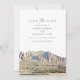 Det här datumet sparar du med en vattenfärgsmålning av Boulder, Colorado Flatirons. Redigera enkelt *de flesta formuleringar för att uppfylla dina behov och lägg till egna foton på baksidan med din bröllop-webbplats.