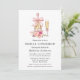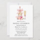 Modern Elegant Watercolor Champagne Bottle and Glass with Pink Bow Ribbon Bridal Shower Luncheon Invitation. Features minimalist black and white text and white background. Includes watercolor pink blush floral including pink roses and botanical greenery.