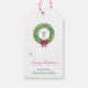 Watercolor Boxwood WAN Red Bow God jul Presentetikett