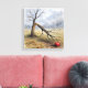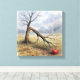 In a foggy landscape, a bare tree stands with a fallen branch on the ground, while a single red apple nearby adds a pop of color