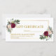 Watercolor Burgundy Blommigt Gift Certificate Guld