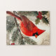 Watercolor Cardinal on Snowy Pine Branch Christmas Pussel