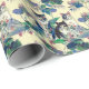 Wrapping paper in a watercolor-style illustration of three black-and-white cats surrounded by lush, vibrant green foliage, with purple and pink flowers. The composition is dreamy and nature-infused, blending realism with fantasy.