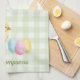 Watercolor Chick And Eggs On Green With Name Kökshandduk