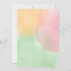 Lovely pastel Easter brunch design featuring Destei's watercolor illustration of a yellow baby chick nestled inside a willow wreath. The wreath is decorated with colorful pastel Easter eggs. The background includes soft watercolor splashes in light orange, green and pink. The text sections appear in different pastel tones, enhancing the overall pastel theme. Three pastel Easter eggs sit along the bottom as an additional detail. The other side is fully covered with watercolor splashes, creating a cohesive and decorative finish.