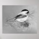Watercolor Chickadee Bird Pine Cone Nature Art Poster