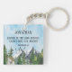 Anpassadets textdesign med avslappnande vattenfärg, målad karaktär av berg, skog och en hytt med blå himmel och bibelversen från filippier 4:4 "Rejoice in the Lord Alltid, återigen, jag vill säga, glädje!"