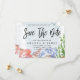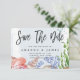 Vackra vattenfärgsfärger med bröllop spara datum-kort har penselskriptet "spara datumet" och vattenfärgen under havsbilden som bakgrund. Om du vill redigera mallen klickar du på anpassa ytterligare.