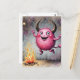Watercolor Cute Pink Monster and a Campfire Vykort