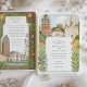 Fira bröllop på vackra Darmstadt, Tyskland med den romantiska inbjudan till bröllop med vattenfärger som innehåller symbolmärken som Hochzeitsturm och ryska Chapel. Inbjudan, som är uppbyggd med uppgifter om blommigten i Art nouveau i mjuka pasteller, framkallar den charm och elegans som den europeiska arkitekturen och dekorativa konsten har. Perfekt för ett målbröllop med en finare, konstnärlig estetik.