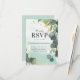 Svarskort från elegant grönt bröllop med en avfettad vattenfärg som tvättas ut från bakgrunden, botaniskt eucalyptus löv, stänk av faux guld-folie och en enkel bröllop OSA.